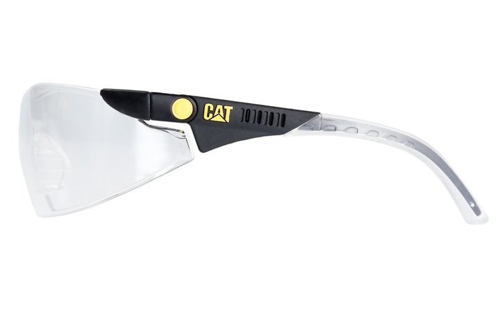 Four lens inclination adjustments with snap-lock ratchet mechanism, single wraparound 180 degree lens, 2.2mm polycarbonate material tested at velocity to shield from impact, fog prevention coating, hard coated both sides for resistance to scratching, multi-length temple adjustment with 4 locking positions, high comfort PVC tip composite and Rubber nose fit soft-molded for comfort. Meets or exceeds requirements for AS/NZS 1337.1 Medium Impact Protective Eyewear